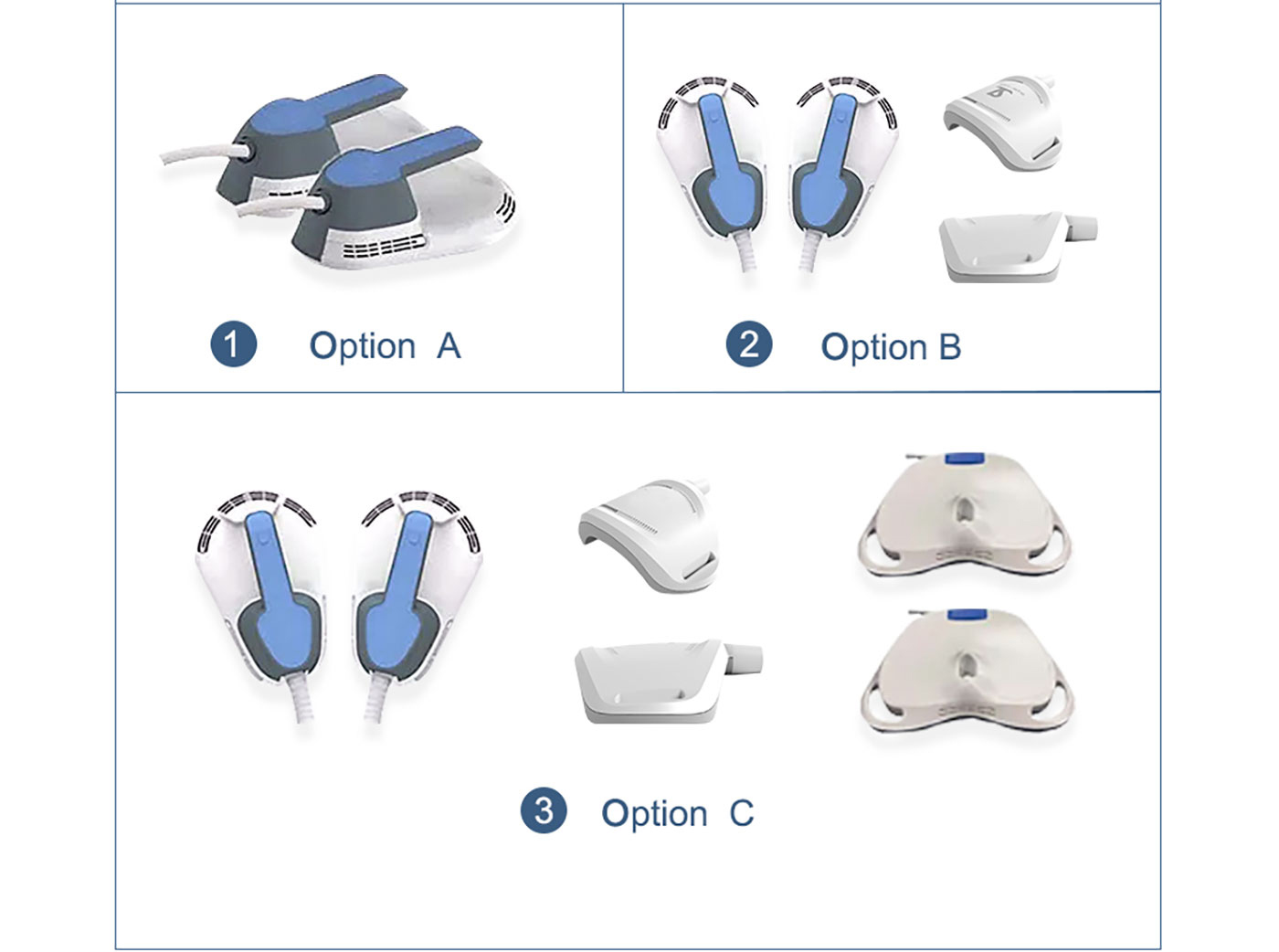 We offer a variety of handpieces for you to choose from, each designed for use on different body parts. Additionally, we provide cushions specifically equipped for treating conditions such as pelvic floor muscle relaxation.